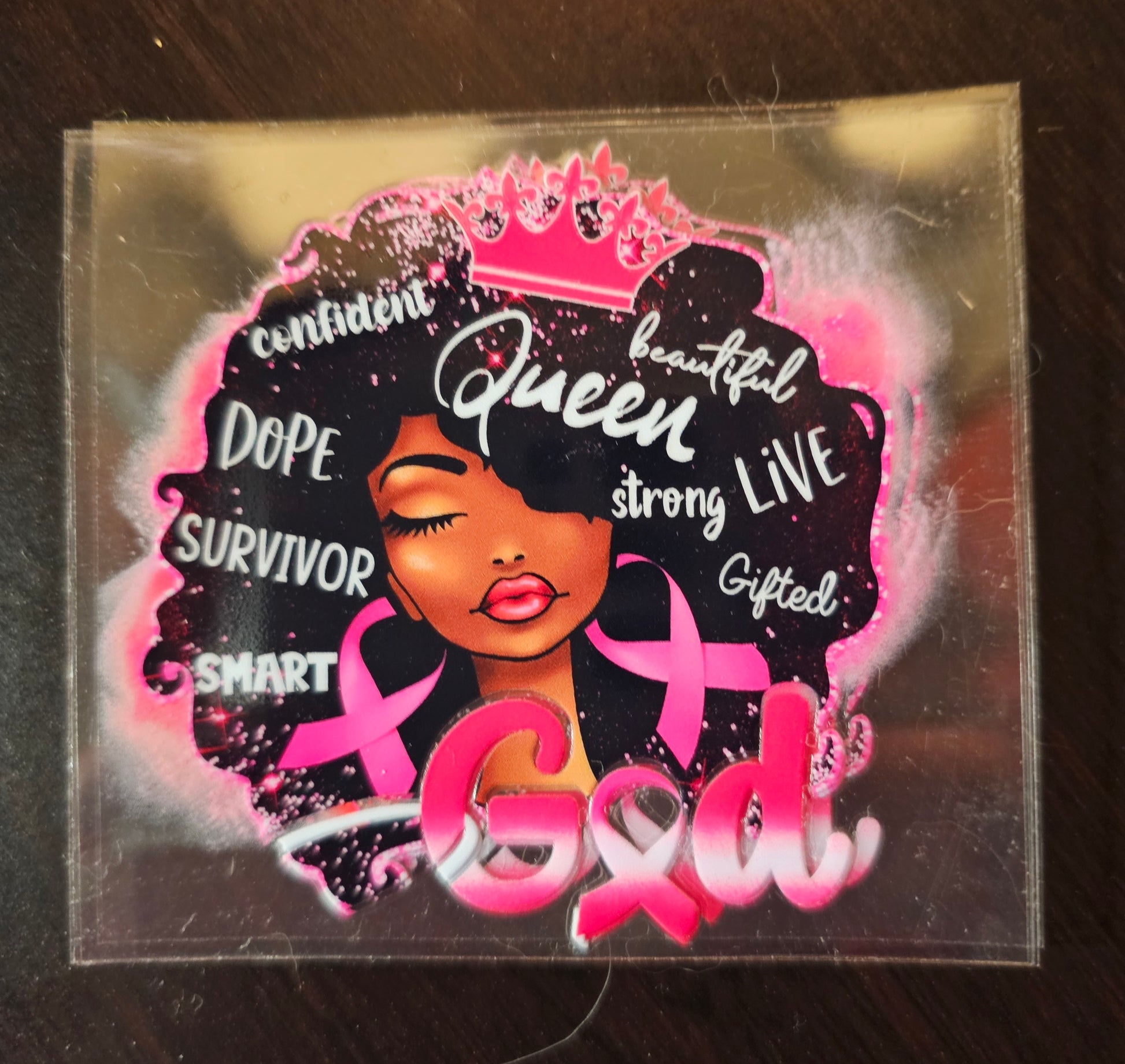 This small decal would work best on either a cup or a notebook that is small. It is probably 2in big.