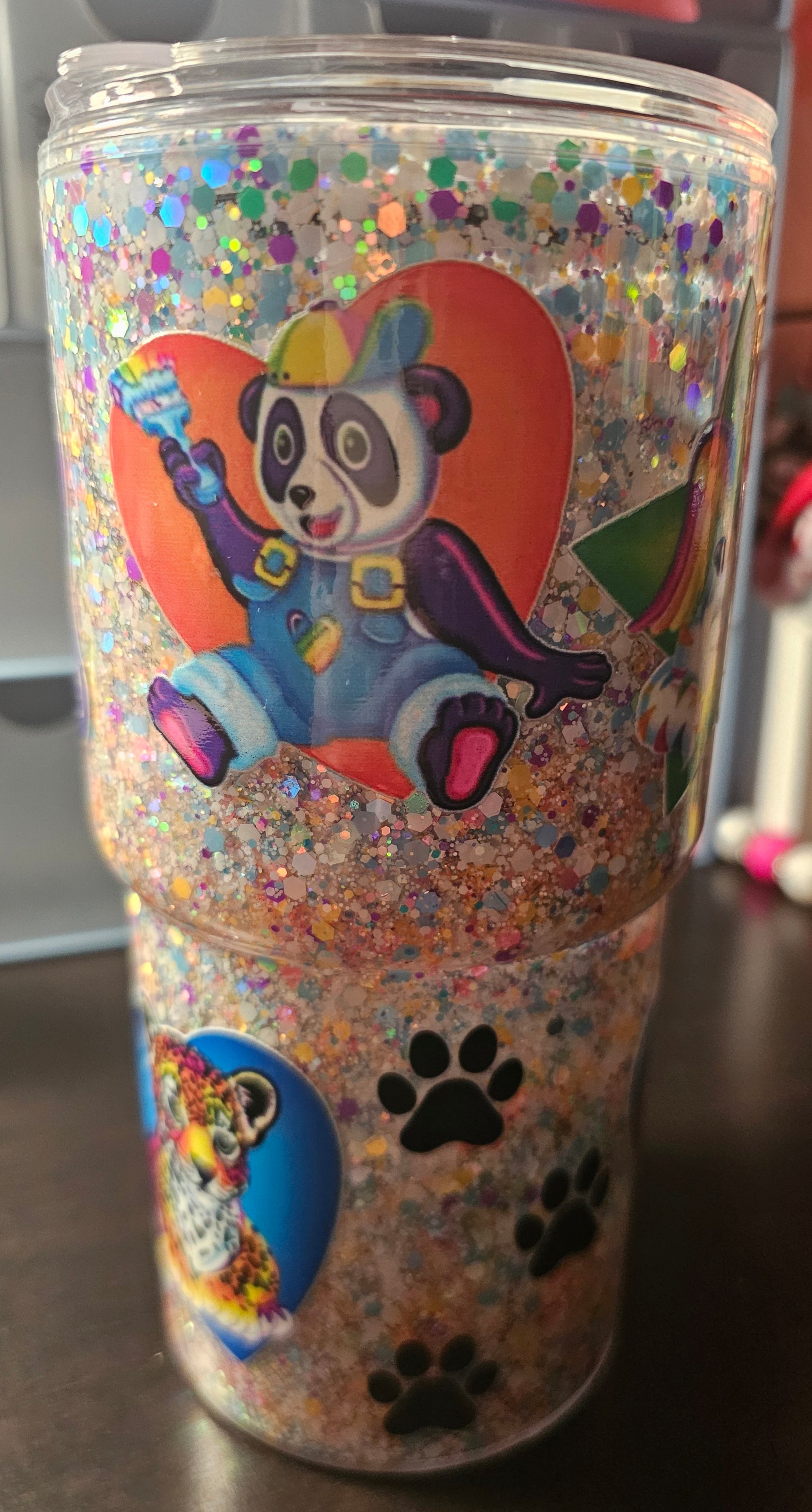 18oz Lisa Frank Cup. It is a snowglobe cup and looks awesome. It glows in the dark also.