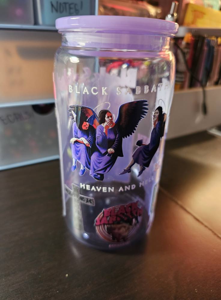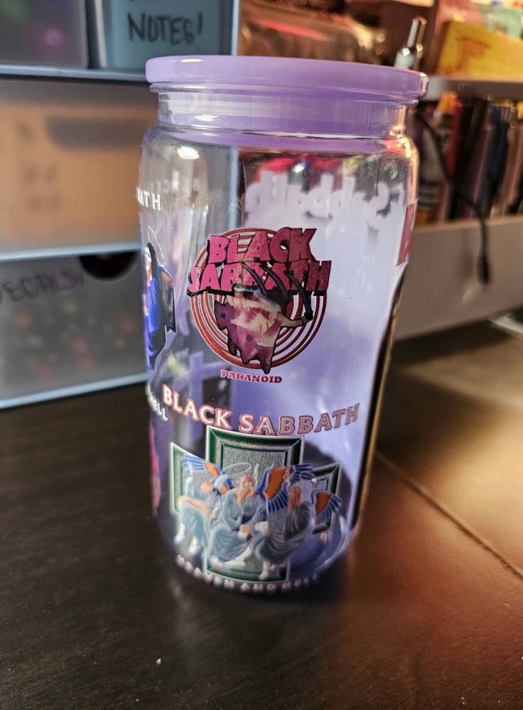 This is a 16oz Purple Ombre cup with Black Sabbath/Ozzy Osbourne front and center.