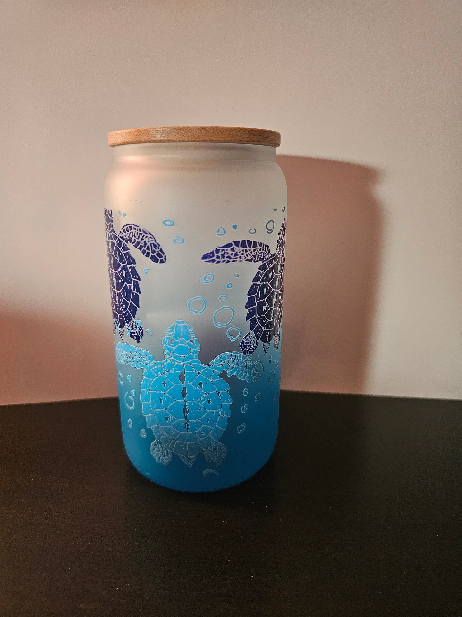This is a 16oz glass Ombre cup. it can either come with a bamboo lid or a colored lid of your choosing.