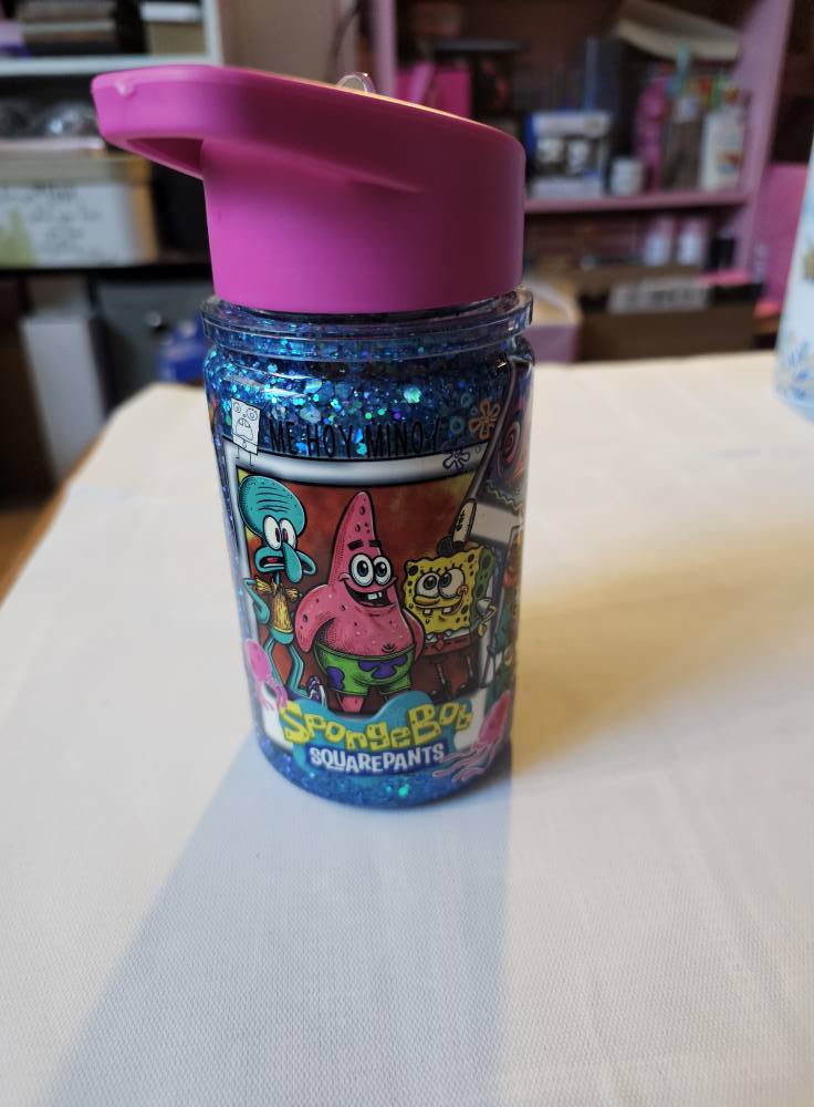 10oz kids waterbottle. It is Spongebob and friends. It is so stinking cute. The lid can be changed to a light blue lid for a boy if needed.