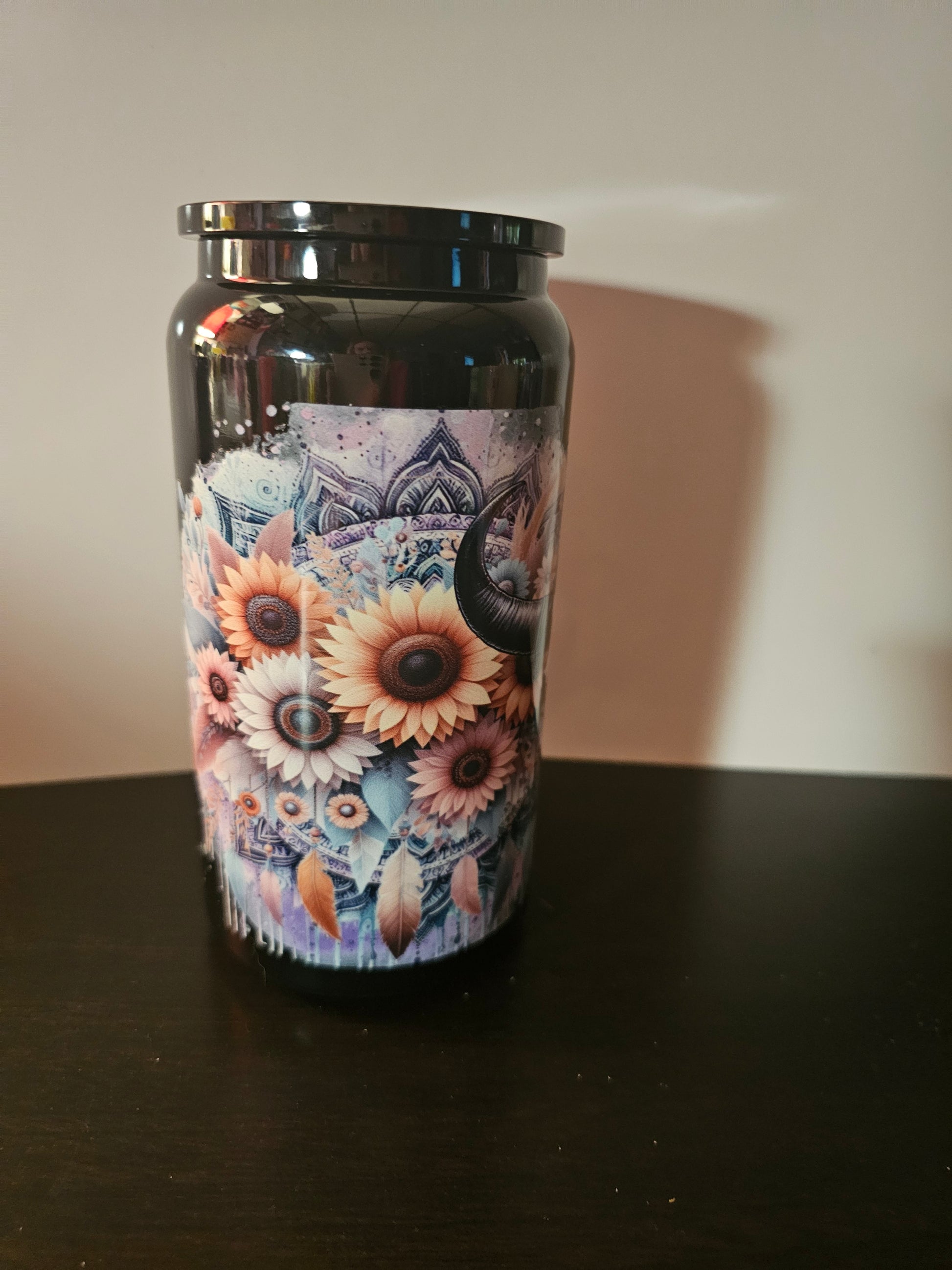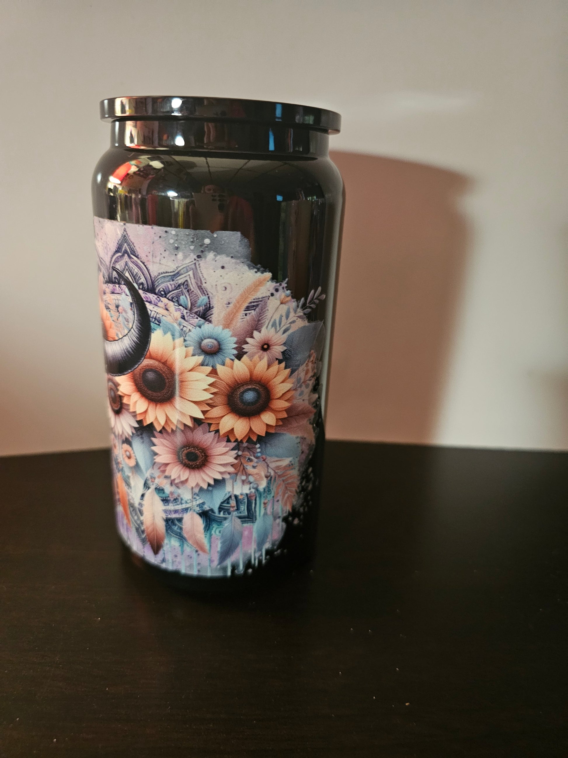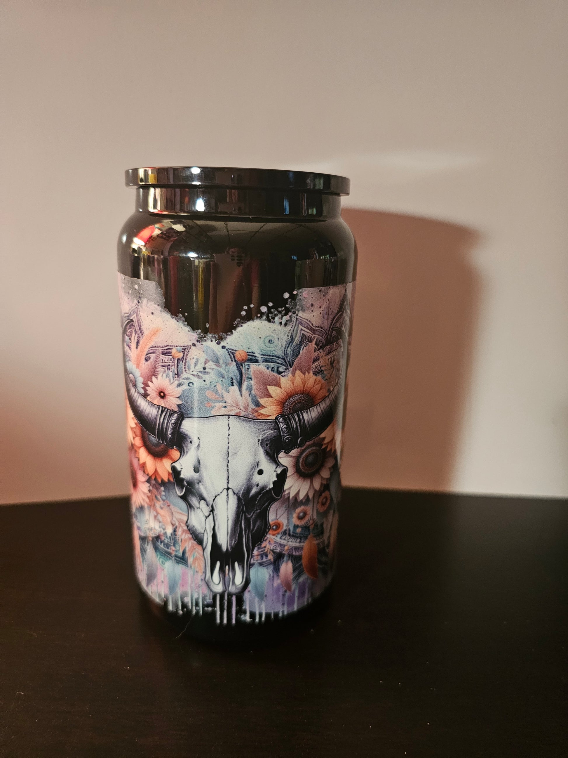 This is a 16oz stainless steel cup that comes with either a clear straw or get a colored straw that matches your cup.