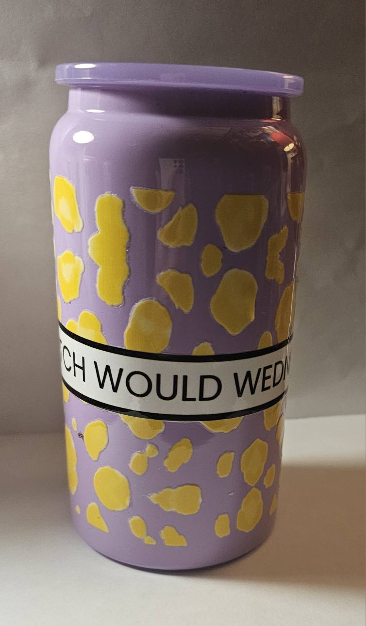 This is a 16oz stainless steel cup that comes with either a clear straw or get a colored straw that matches your cup.